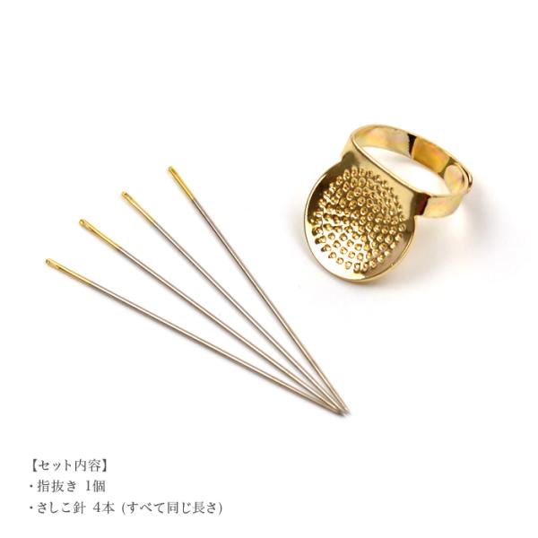 刺し子に適したさしこ針4本と指抜きのセットです。