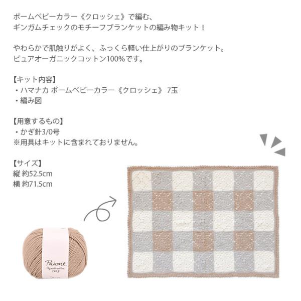 編み物 キット 毛糸 / Hamanaka(ハマナカ) ポームベビーカラー《クロッシェ》で編むギンガムチェックのモチーフブランケットキット