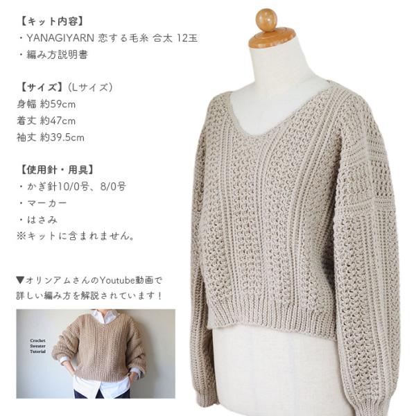 セーター キット 毛糸 編み図 / YANAGIYARN(ヤナギヤーン) 柳屋×オリンアムコラボ 恋する毛糸 合太で編むVネックセーターキット