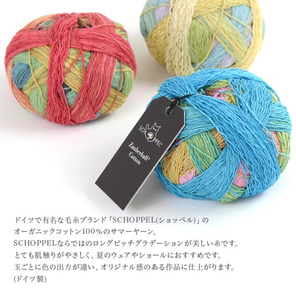 ドイツで有名な毛糸ブランド「SCHOPPEL(ショッペル)」のオーガニックコットン100%のサマーヤーン。