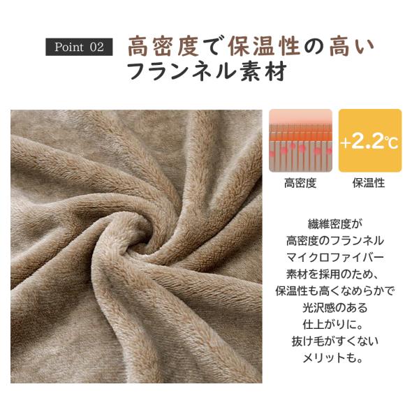 普通なブランケットより約1.5倍の高密度マイクロファイバー生地を採用。キメ細やかな繊維が、ふわふわで柔らかな肌触りで体を優しく包み込みます。