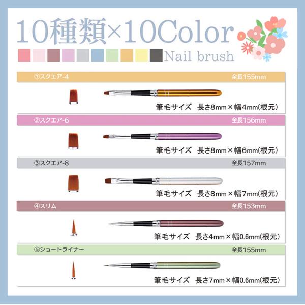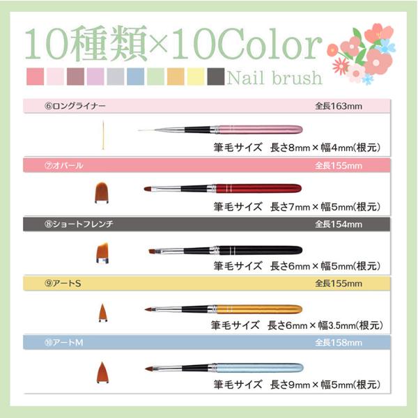 10種類の筆先で爪先おしゃれを自由自在 ジェルネイル用 ブラシ