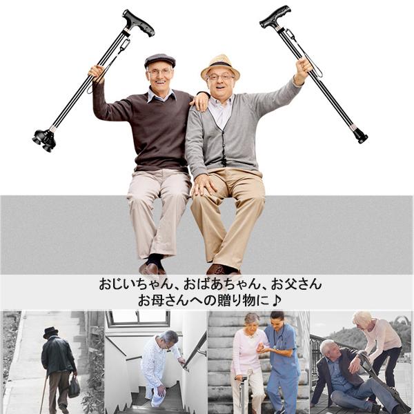 送料無料 敬老の日ステッキ 杖 名入れ プレゼント LED 介護用品 介護 ステッキ 自立式 4点杖 トレッキングポール かっこいい 伸縮杖 歩行補助杖