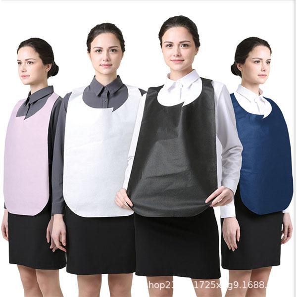 ?かぶるだけの不織布の使い捨てエプロンです。紙タイプやビニールタイプと違いカサカサ、シャカシャカせず、柔らかで手触りもよく、通気性もいいので快適にご使用できます。
