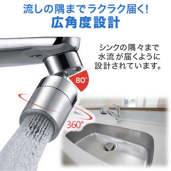 自在に首振りができますのでシンクの隅々まで流すことができるのでシンクのお掃除もラクラクです。