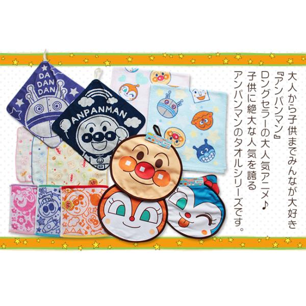 アンパンマンシリーズはループ付きハンドタオルやフェイスタオル、夏場に役立つクールタオルも展開。