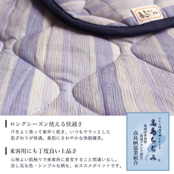 湿度の高い日本で愛される伝統素材「高島ちぢみ」を使用した敷きパッド。独特のシワによる通気性・速乾性で蒸し暑い日も快適。