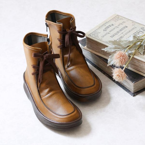 【30%OFFセール】 レースアップブーツ 歩きやすい 疲れない 痛くない 軽量 ジッパー 旅行 紐靴 日本製 WANAB ※返品不可/交換往復送料お客様負担