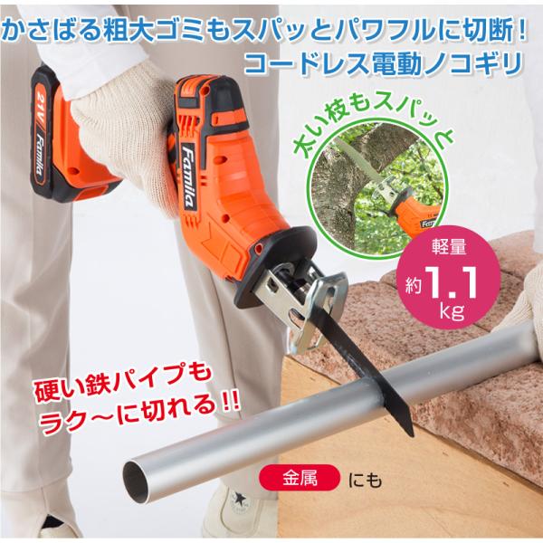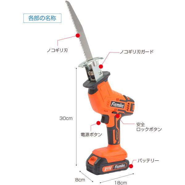 ファミラ 充電式コードレス電動ノコギリ 6点セット ファミラ 21V 充電式 のこぎり コードレス ハンディタイプ 電動ミニチェーンソー DIY 枝切り 電動 枝切り