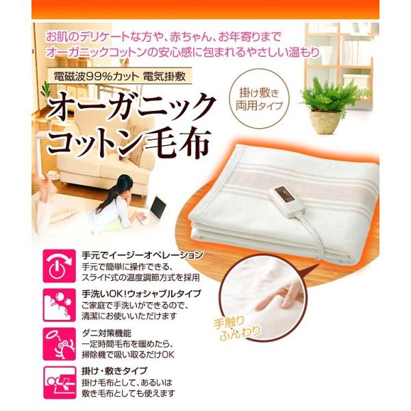 オーガニックコットン100%の洗える電気掛敷毛!