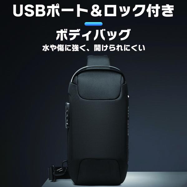 ボディバッグ メンズ 大容量 防水 盗難防止鍵付 ワンショルダーバッグ ショルダーバック パスワードロック USB充電 斜め掛け 防水 大容量 プレゼント ギフト