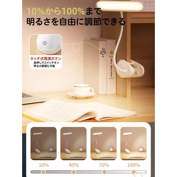 デスクライト led 明るい クリップ コードレス 充電式 目に優しい おしゃれ 子供 勉強 自立式 無段階調光 ライト デスク ベット