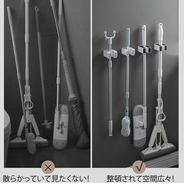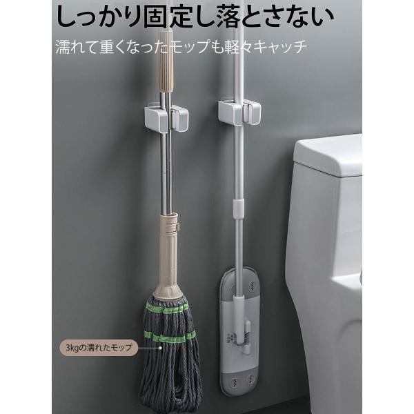 モップホルダー 穴あけ不要 モップフック 壁掛け 粘着タイプ 穴あけ不要 整理整頓 片付け 収納 ほうき モップ 同色2個セット