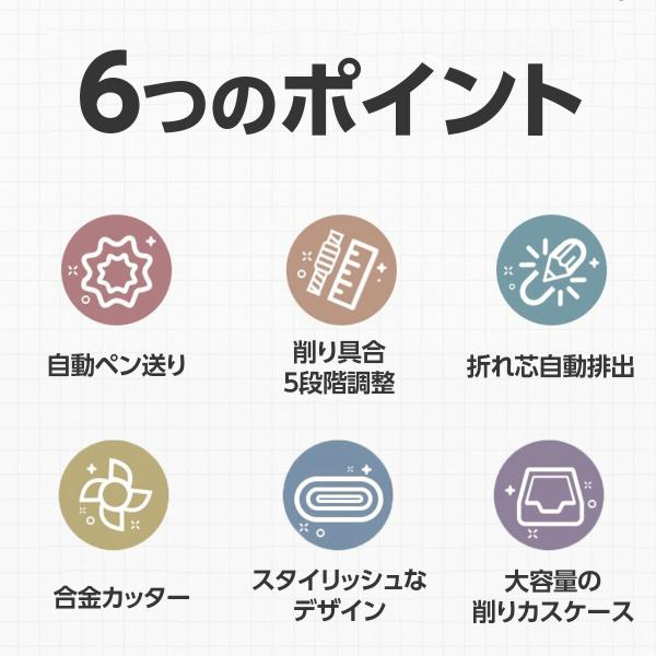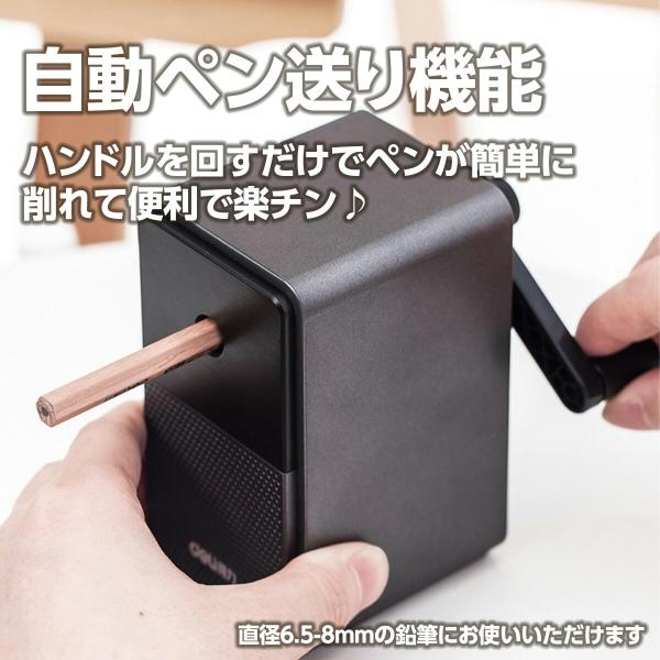 ・自動ペン送り機能鉛筆を抑えてなくてもハンドル回すだけで削れます。
