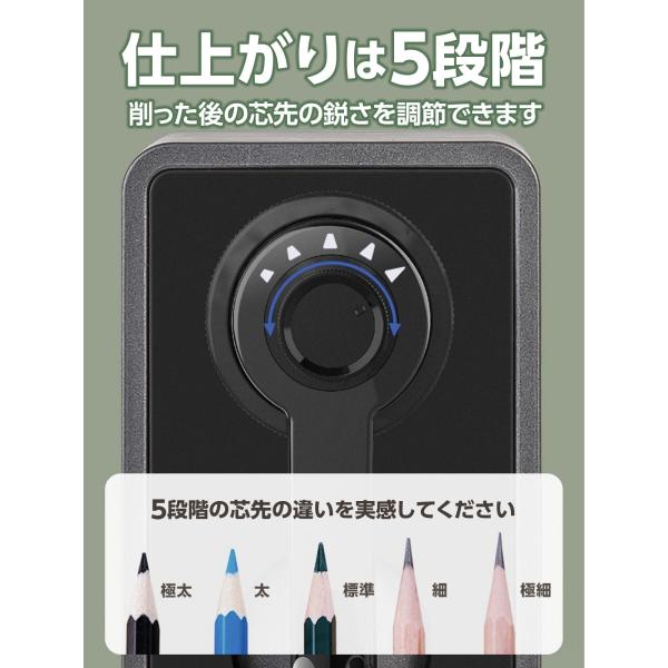 ・芯先を調整して削ってくれます。仕上がりは5段階調節。