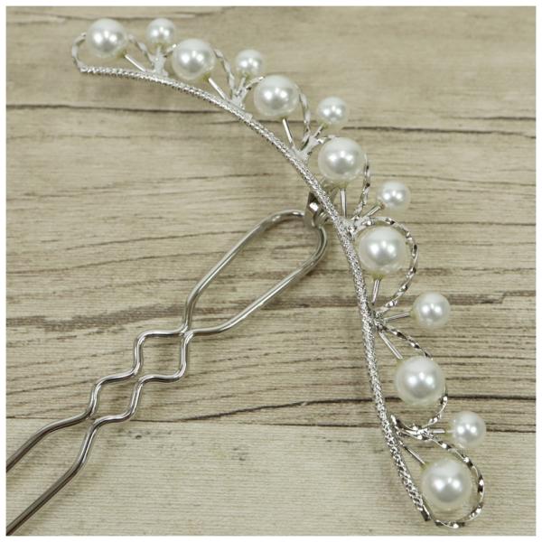 ブランチ パールかんざし シルバー 花しおり 結婚式 入卒式 七五三 お宮参り パーティー アクセサリー 夜会巻き アレンジ ウェーブ