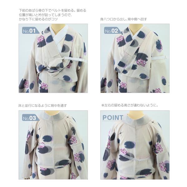 薄物、薄色のお着物の装いにも表に見えにくい白メッシュのベルト。