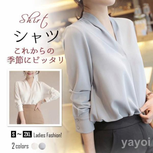 シャツ ブラウス長袖 ゆったり 秋 春 トップス 新作 Vネック レディース オフィス カジュアル オシャレ フォーマル 体型カバー キレイめ 通勤