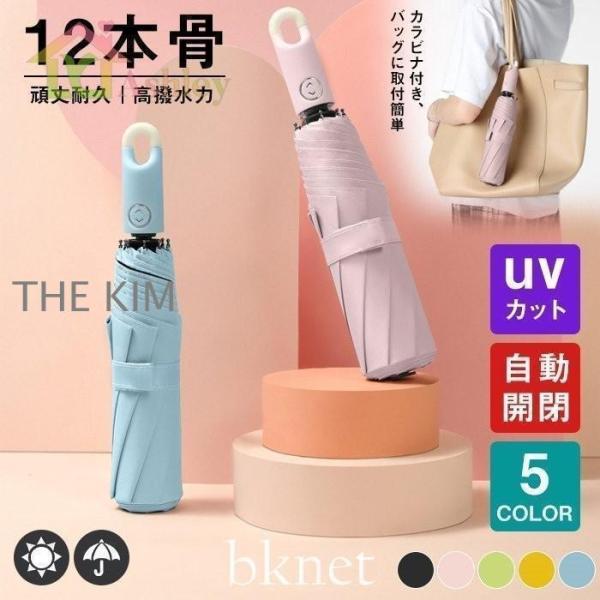 折りたたみ傘 8本骨 自動開閉 ワンタッチ カラビナ付き 完全遮光 撥水 日傘 uvカット 遮光100% 紫外線対策 UV遮蔽率100% 晴雨兼用