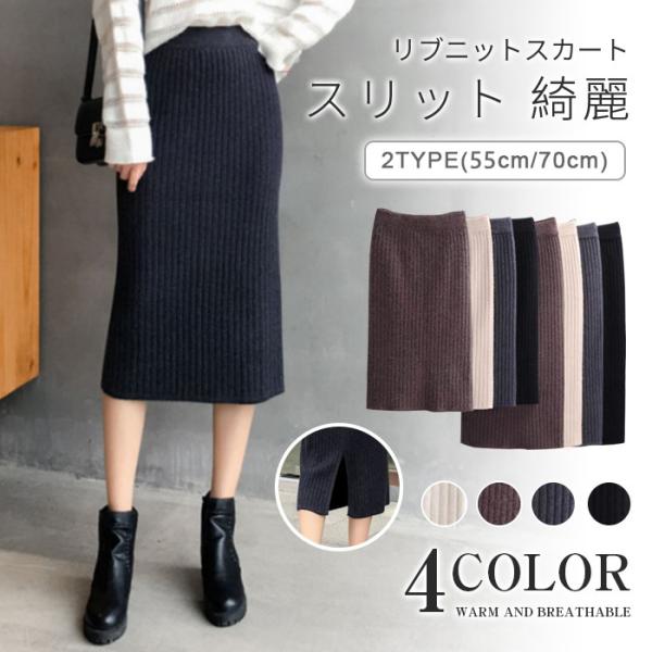 ニットスカート タイトスカート リブ スリット レディース スカート 膝丈 ストレッチ ミモレ丈スカート ボトムス ひざ丈 ロング丈 新作 秋 春 冬