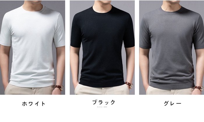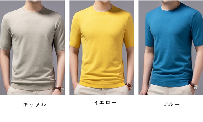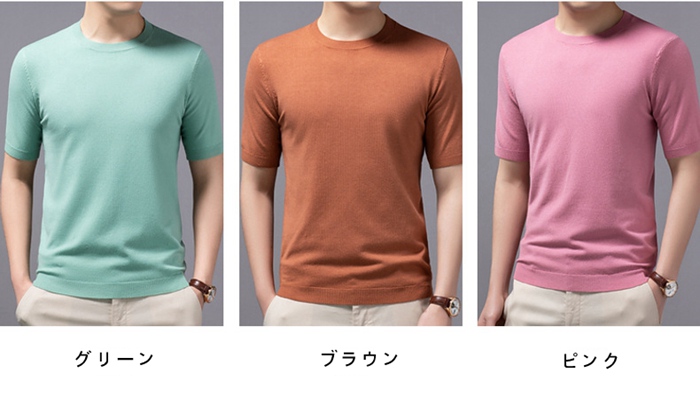 半袖ニット メンズ サマーニット サマーセーター ニットTシャツ クルーネック トップス カットソー カジュアル ビジネス 仕事 無地 薄手 半袖 Tシャツ