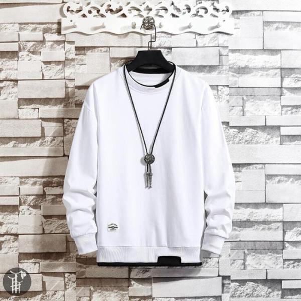トレーナー レイヤード風Tシャツ 重ね着風 メンズ トップス 切り替え スウェット オシャレ プルオーバー 長袖 クルーネック 春服 秋服 新作