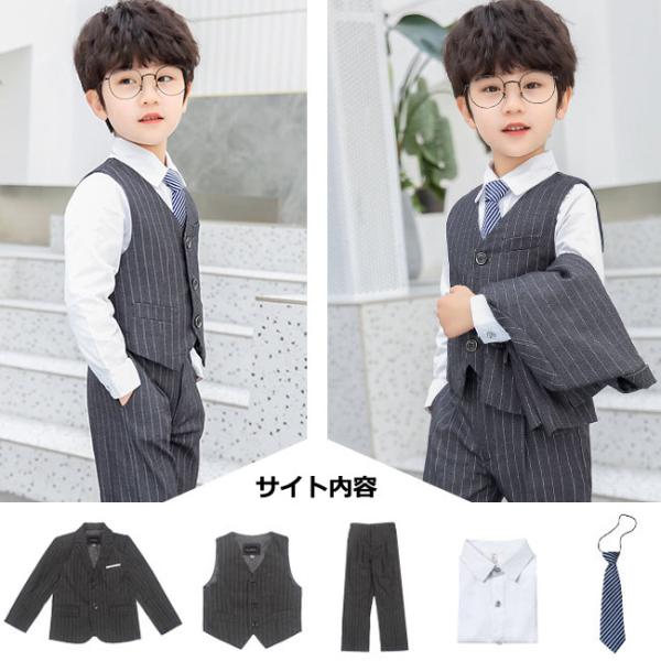 入学式 スーツ 小学生 卒業式 男の子スーツ セットアップ フォーマル 発表会 結婚式 卒園式 5点フォーマルスーツ 男子スーツ 大きいサイズ 5点セット ストライプ