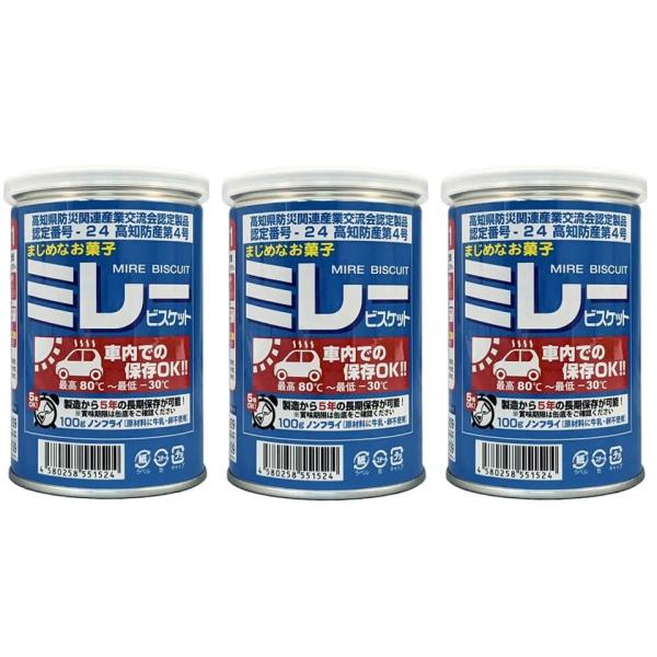 \ 3個セット / 野村煎豆加工店 車載用 ミレービスケット 100g 保存缶 賞味期限4年半保証 ノンフライ 非常食 防災グッズ 保存缶