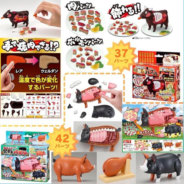 遊んで学べる「肉・ホルモンの部位がわかる焼肉パズル」が登場!バラバラの37パーツを組んでウシ一頭を完成させよう!