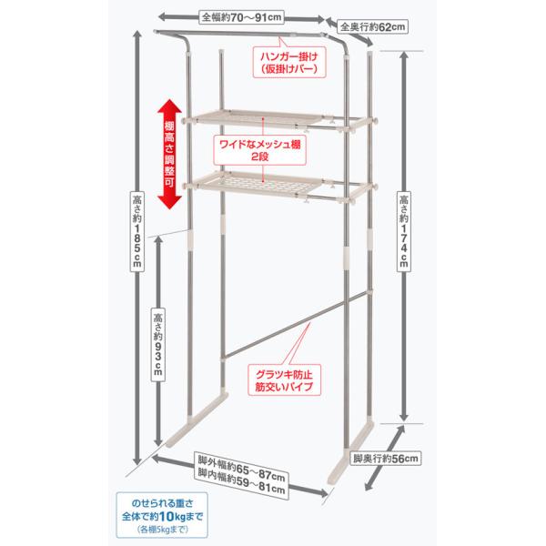 セキスイ 積水 洗濯機 洗濯機上 洗剤 日用品 ストッカー タオル フェイスタオル バスタオル ラック ステンレス製 有効活用 伸縮 簡単組み立て 高さ調節 幅70 幅91 奥行62 高さ185 cm センチ 洗面所 脱衣所 洗濯機回り スッキリ すっきり 片付く 収納 おすすめ オススメ 人気 便利 使いやすい 洗濯用品 洗濯グッズ ランドリー ランドリー用品 ランドリーグッズ コンパクト 省スペース スリム 2段 ハンガー掛け メッシュ 棚 筋交い 安定感 デッドスペース 4906648102341