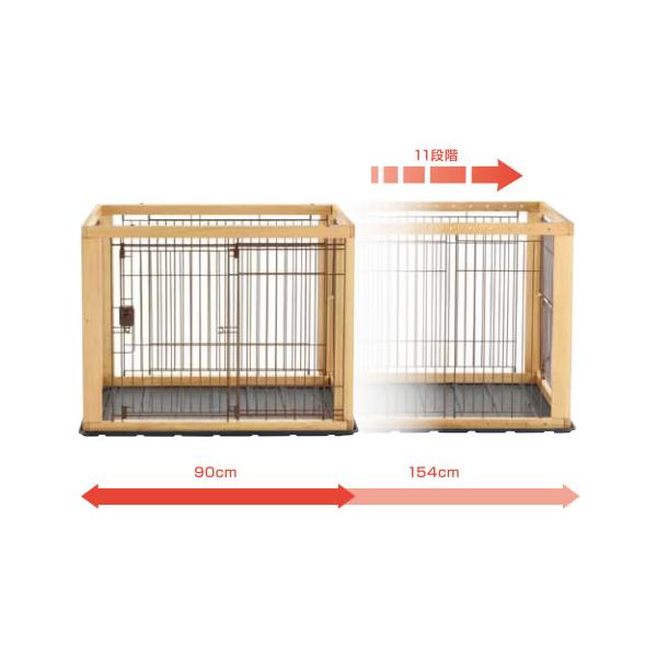 リッチェル 木製スライドペットサークル ワイド アンダートレー付 ダークブラウン / ナチュラル | ペット サークル 木製 犬 ケージ 伸縮