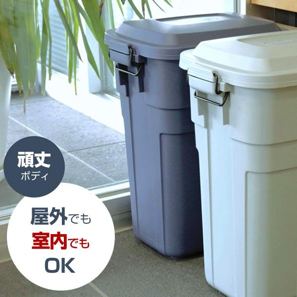 ゴミ箱 屋外 トラッシュカン 30L グレー/ネイビー | ごみ箱 室内 外 兼用 ロック付き ペット いたずら対策 おしゃれ フタ付き ペール