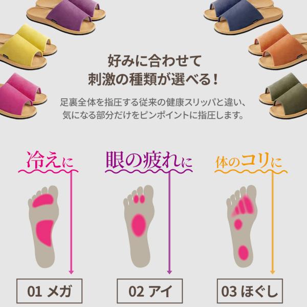 刺激が選べる 冷え 眼精疲労 目の疲れ ドライアイ 体の歪み ピンポイント 気になる部位に しっかり届く 効果を選べる 筋肉疲労 疲労回復 整える ほぐす 履くだけ ストレッチ マッサージ 体圧分散 ながら整体 ずぼら整体 おうち整体 セルフ整体 セルフケア インソール 青竹踏み ピンポイント 気になる部分 姿勢 スリム 体の歪み 簡単 効果を 選べる 使い分ける 症状にあわせて すっきり 気持ち良い 健康グッズ リラクゼーション リラックス リフレッシュ デザイン おしゃれ スエード オリーブ ネイビー マスタード オレンジ パープル ピンク 4528870510208