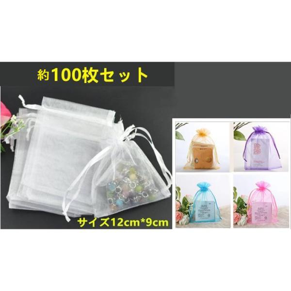 送料無料 新色追加 約12cm × 9cm 約100枚 オーガンジー 布 無地 半透明 巾着 ラッピング 袋 バレンタイン ハロウィン ホワイトデー