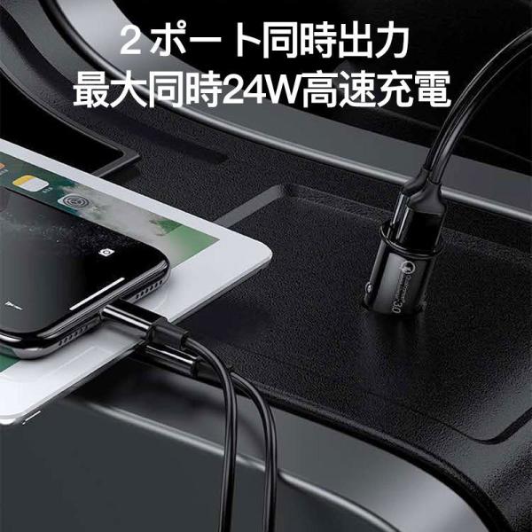 送料無料 便利グッズ 車 シガーソケット usb 増設 車載充電器 USB2連 電源 超小型 3.1A /PD QC3.0 高速 12V/24V 車用 白 黒