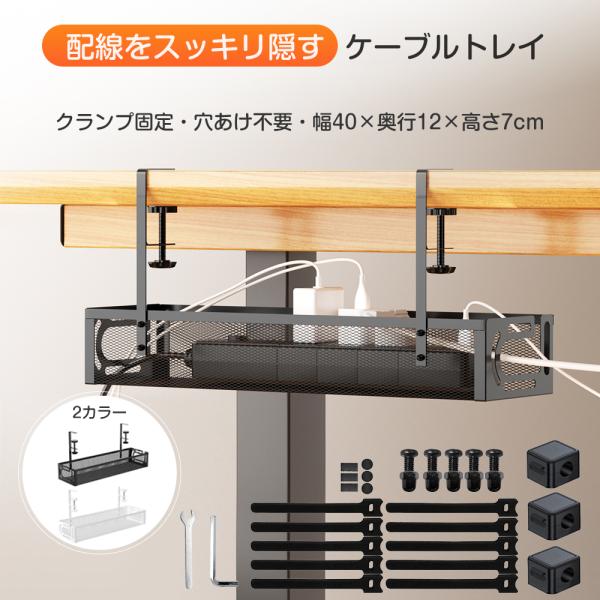【10%OFFセール】ケーブルトレー クランプ式 配線隠し 配線トレー ルーターコンセントタップ収納 ケーブル収納 デスク下 ケーブルオーガナイザー 幅40cm