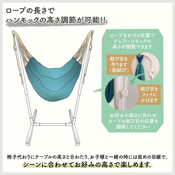 ロープのかける位置で簡単に高さ調整ができるため、シーンに合わせて活用できます。