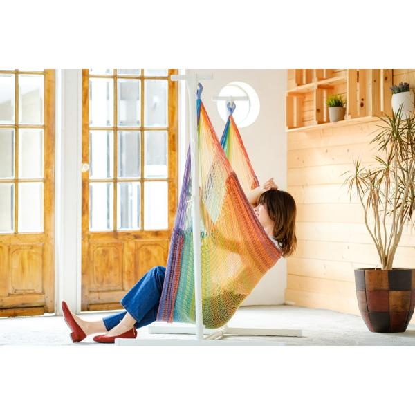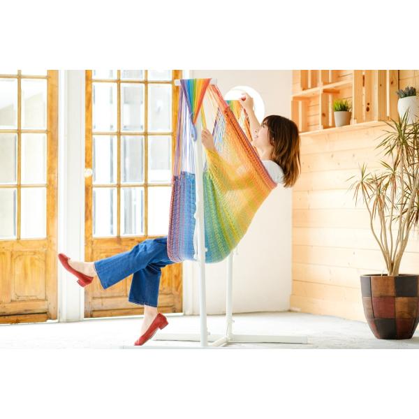 どこにでもハンモックを設置できる、組み立て簡単な専用スタンドです。