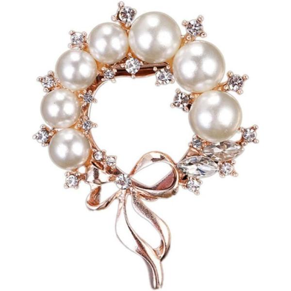【並行輸入品】蝶結びブローチ パールデザイン 真珠風 ラインストーン レディース エレガント フォーマル ブローチ(定形外郵便、送料別商品)