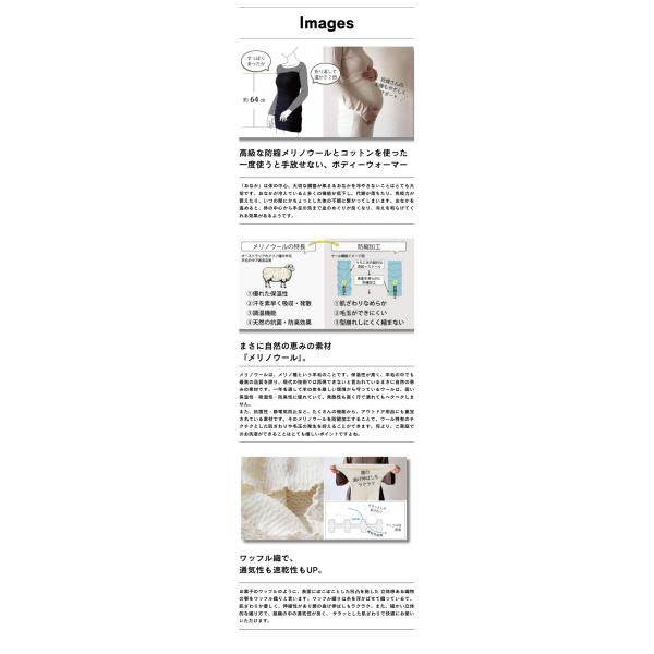 高級防縮メリノウールとコットンを使用した、弾力のある長いボディウォーマー。お腹を中心に、全身を優しく温める心強いアイテムです。肌触りの良さと多機能性で、一度使えば手放せなくなる一品。
