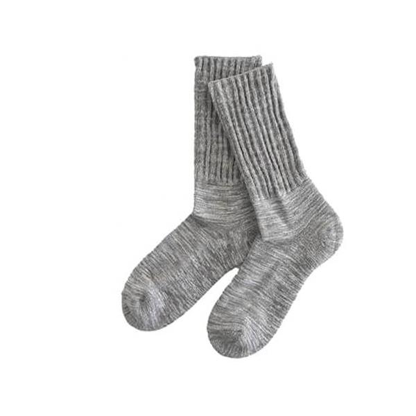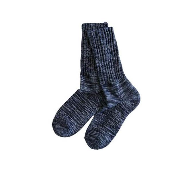 ナチュラルで温かみのある杢調の糸で織り上げた、 まるで「履くタオル」のようなやさしい履き心地の靴下ができあがりました。 足を入れるのが楽しみになる一足です。