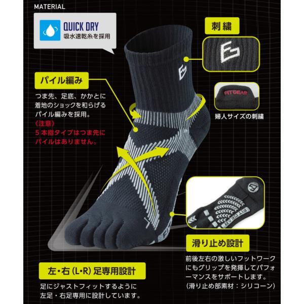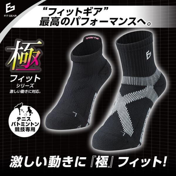 靴下メーカー考案のテニス・バトミントン専用ソックス。激しい動きにフィットする「極(ごく)」フィットシリーズ。