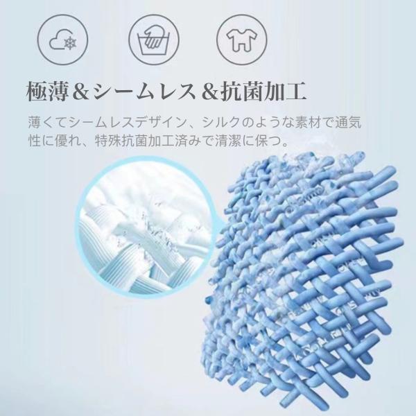 ☆薄くてシームレスデザイン、シルクのような素材で通気性に優れ、特殊抗菌加工済みで清潔に保つ。