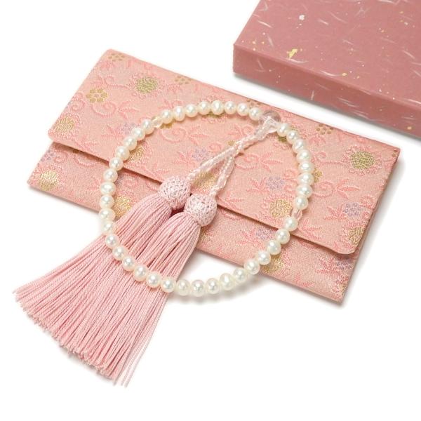 念珠 淡水真珠 淡水パール 6〜6.5mm 念珠ケース付き 数珠 念誦 正絹 紫房 白房 ピンク房 バレンタイン ギフトに プレゼントに 爆買