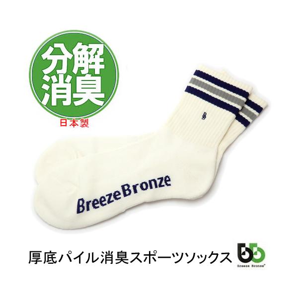 ブリーズブロンズ 消臭 スポーツソックス 消臭靴下 厚底 パイル 消臭ソックス ボーダー S-17 日本製 爆買