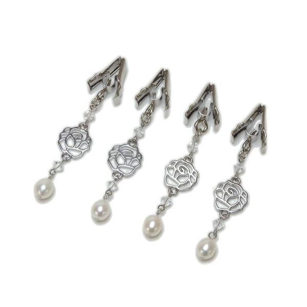 メール便 テーブルクロスウェイト ローズ & パール 4個セット スワロフスキー テーブルクロスクリップ テーブルクリップ ワニグチ 薔薇 爆買