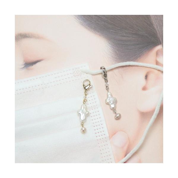 マスクチャーム バロック クロスパール スワロフスキー パール 淡水真珠 マスクアクセサリー チャーム カニカン金具 マスクピアス マスクジュエリー 爆買