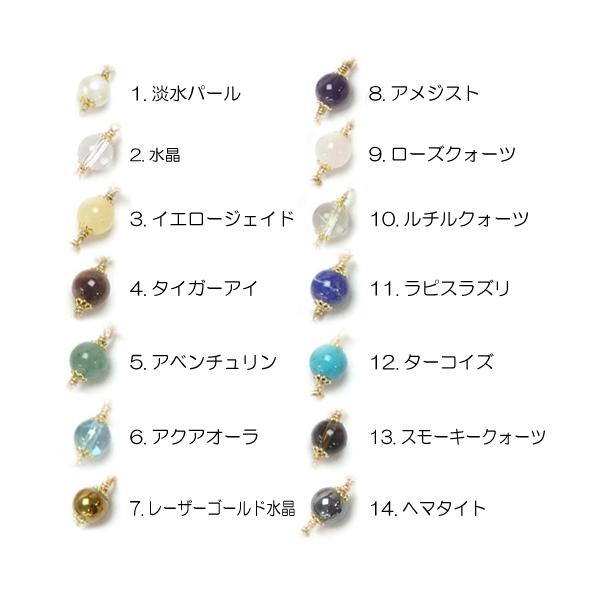 天然石の種類:淡水パール、水晶、イエロージェイド、タイガーアイ、アベンチュリン、アクアオーラ、レーザーゴールド水晶、アメジスト、ローズクォーツ、ルチルクォーツ、ラピスラズリ、ターコイズ、スモーキークォーツ、ヘマタイト