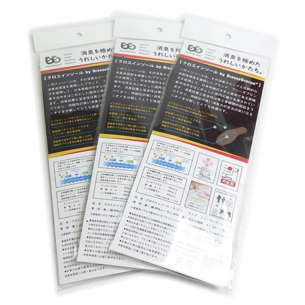 インソール ブリーズブロンズ 消臭 クロスインソール 3足セット K-17 中敷 靴 中敷き 3枚 消臭インソール フリーサイズ 日本製 薄手のインソール 爆買