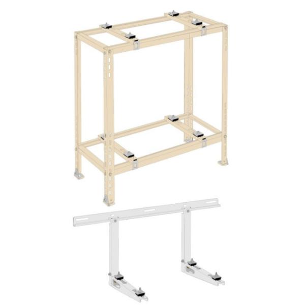 用途:ルームエアコン用架台の本体固定ボルトセットを防振ゴムキットに取り替えるだけで防振架台になります。